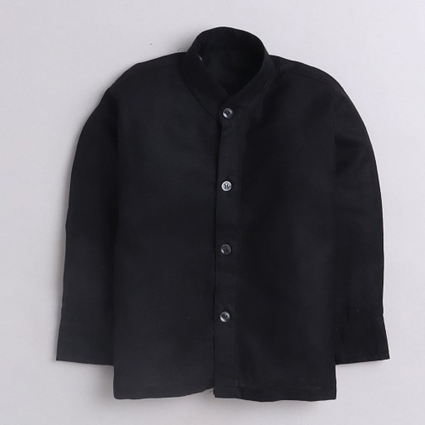 Black solid waistcoat, has a v-neck, sleeveless, front button closure, 2 pockets, bow tie and brooch